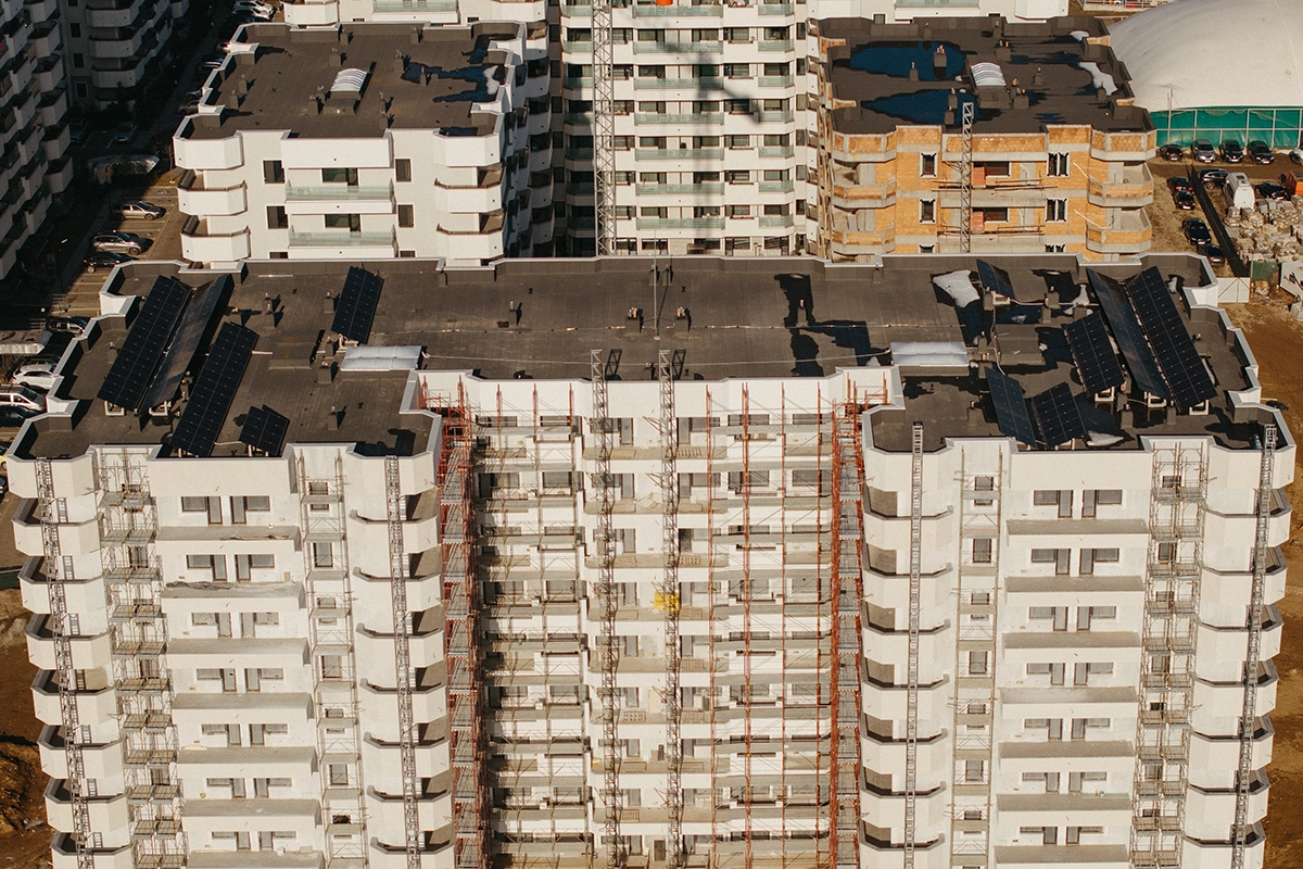 • Terasa blocului este finalizată.